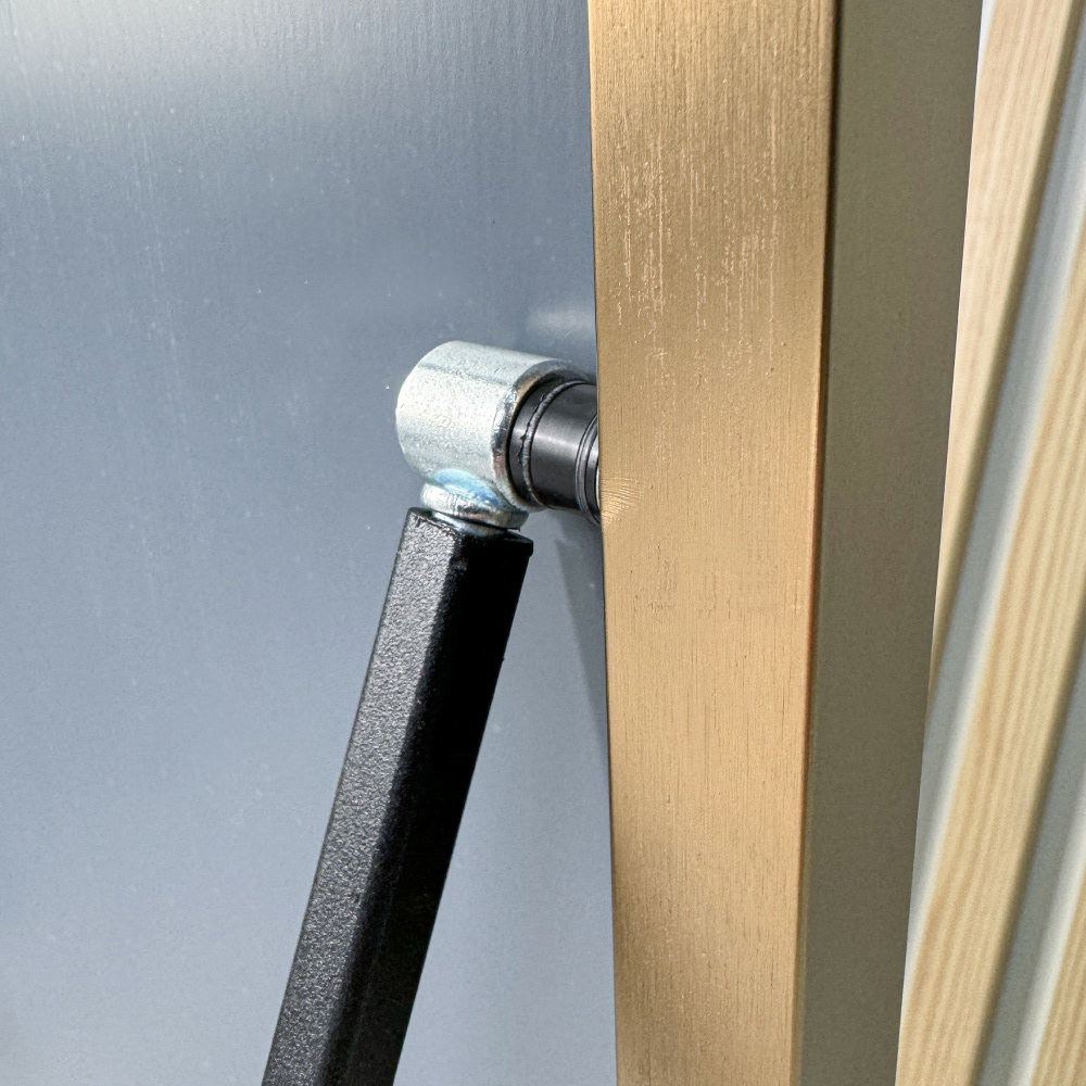 На зеркале установлена откидная ножка с надежным фиксатором в виде цепочки. Конструкция обеспечивает устойчивое положение и предотвращает его случайное опрокидывание, что делает зеркало безопасным в использовании.